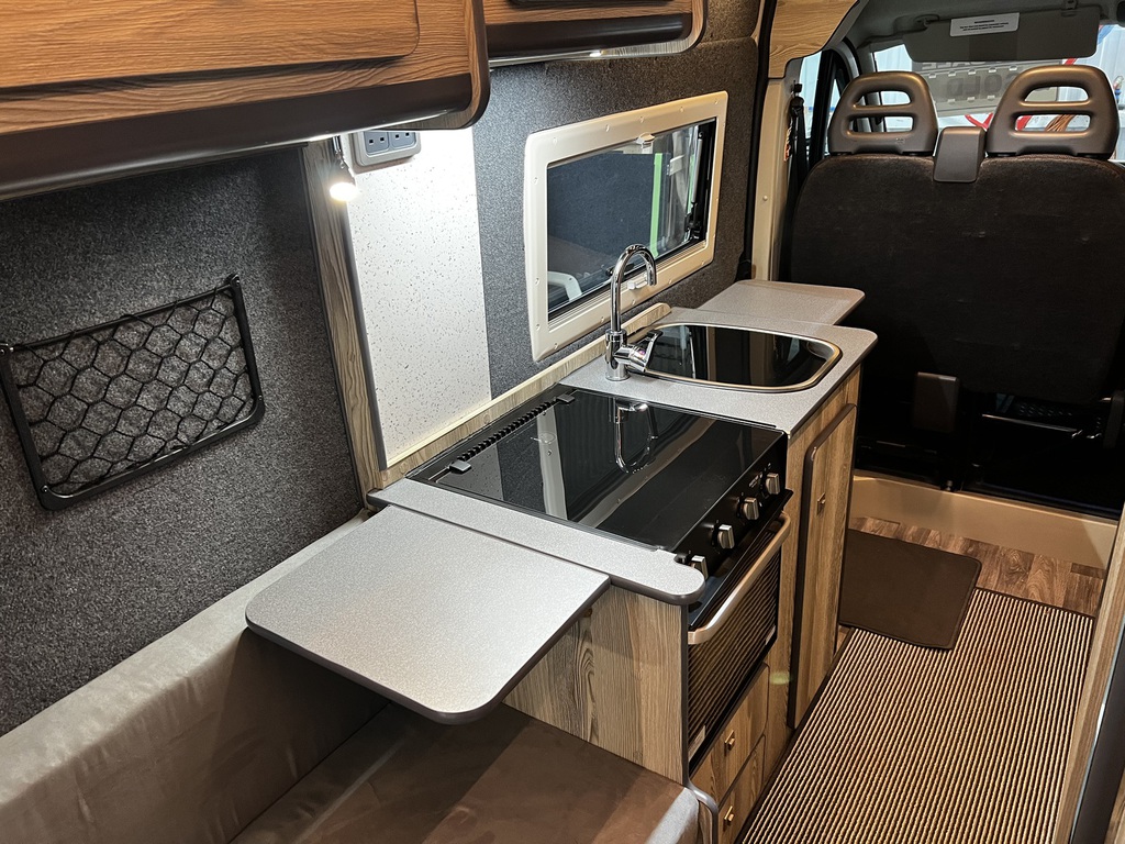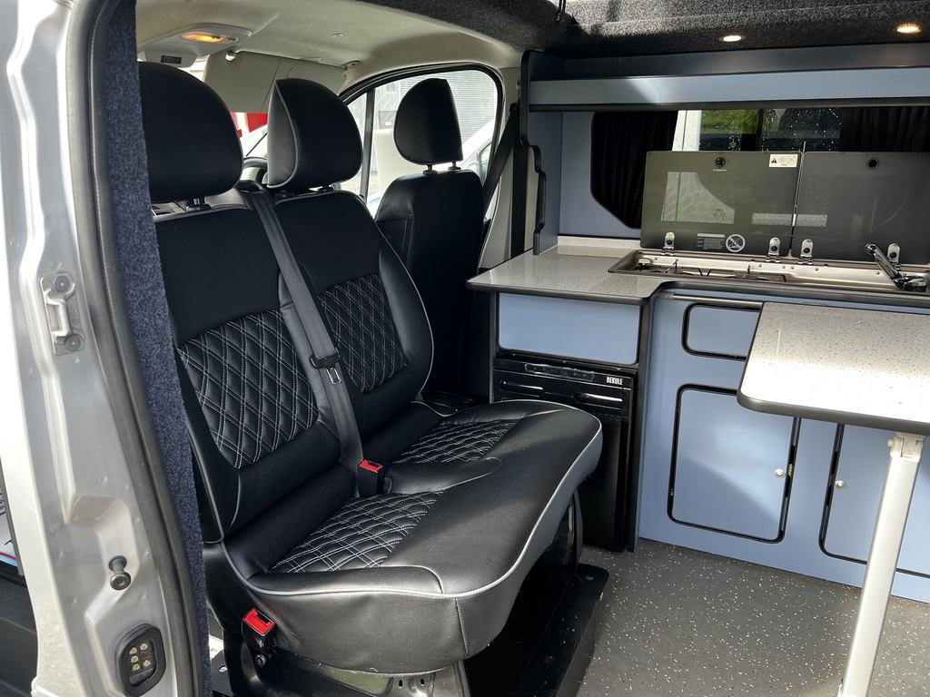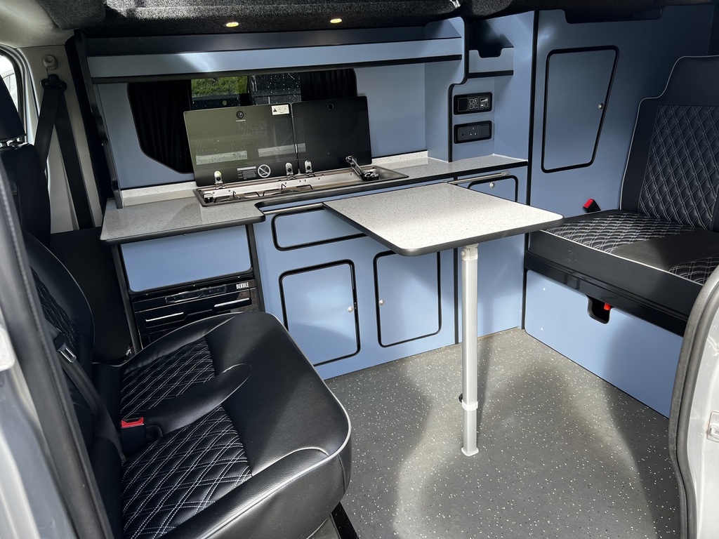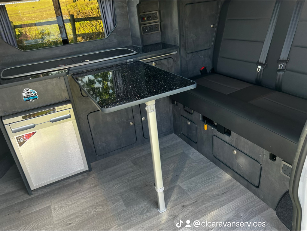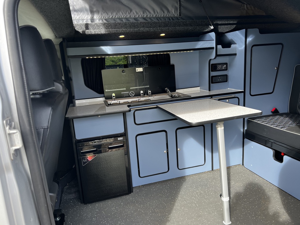 PopTop, Sound Deadening, Ply Lining & Ply Floor, Carpeting & Insulation, Hardware In Vinyl Flooring, Full Kitchen, 12v Compresser Fridge, Smev 2 Ring Burner With Sink, Underslung Water Tank With Tank Sensor, Gas locker Box, Rock N Roll Bed, Full Electrics With Control Panel Desplay, Victron DC To DC Charger, Solar Panel With Victron MPPT Regulator, Led Lights In Ceiling & Under cupboards, No Board Water Pump, Full Leather Effect Front Seats & Rock N Roll Bed With Logo, Swivel Base Seat for Passenger seat, Fiamma F45 Awning, Insurance Approved Diesel Heater