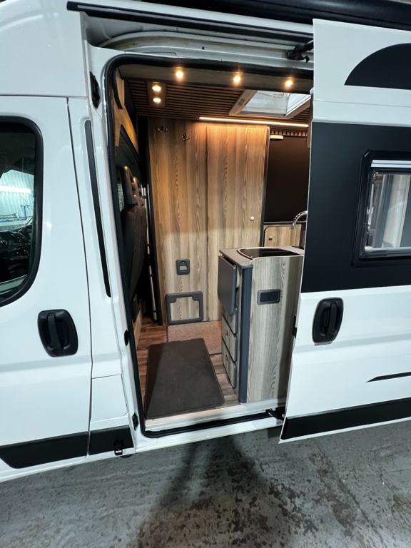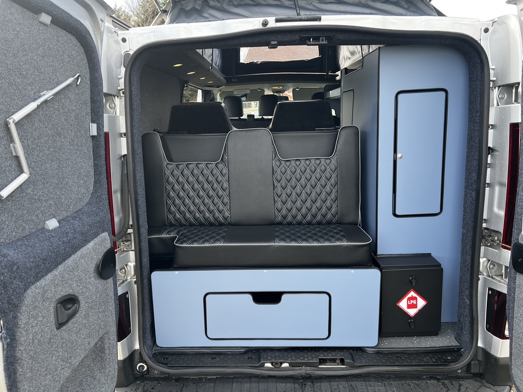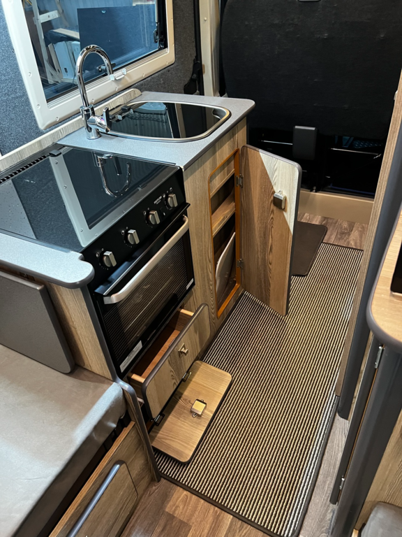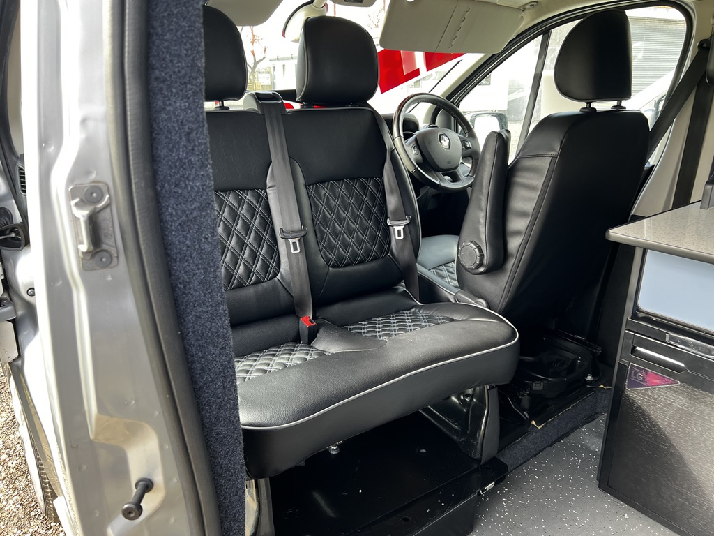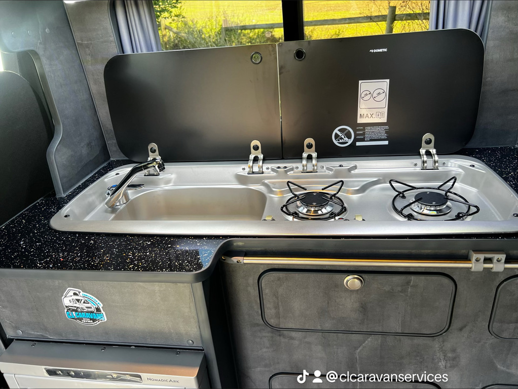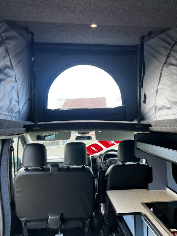 PopTop, Sound Deadening, Ply Lining & Ply Floor, Carpeting & Insulation, Hardware In Vinyl Flooring, Full Kitchen, 12v Compresser Fridge, Smev 2 Ring Burner With Sink, Underslung Water Tank With Tank Sensor, Gas locker Box, Rock N Roll Bed, Full Electrics With Control Panel Desplay, Victron DC To DC Charger, Solar Panel With Victron MPPT Regulator, Led Lights In Ceiling & Under cupboards, No Board Water Pump, Full Leather Effect Front Seats & Rock N Roll Bed With Logo, Swivel Base Seat for Passenger seat, Fiamma F45 Awning, Insurance Approved Diesel Heater